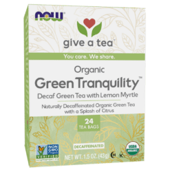NOW Organic Green Tranquility Tea is caffeine-free, organic, and NON-GMO. This green tea with citrus and lemon myrtle hints is invigorating and delightful. A proper cup of tea can spark a newfound vitality for life, especially when done just right with organic green tea leaves and the lively citrus zest of lemon myrtle.